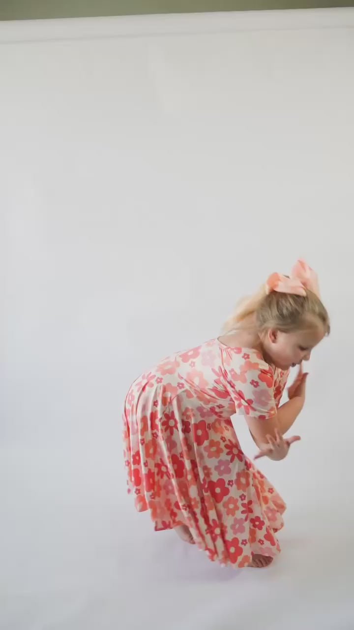 Coral Retro Daisies Twirl Dress
